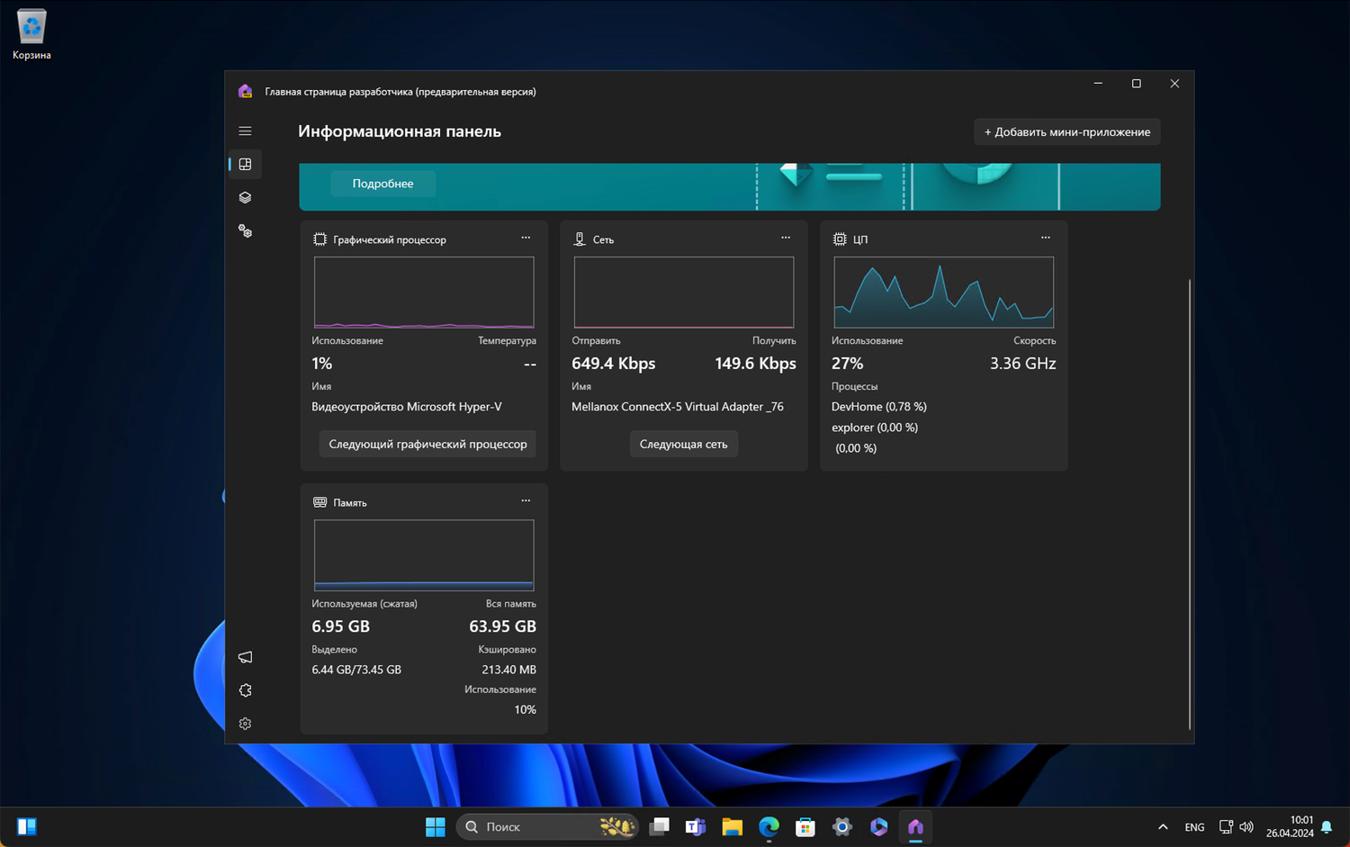 Приложение Microsoft Dev Home или «Главная страница разработчика» позволяет управлять несколькими устройствами и выполнять мониторинг их состояния с помощью единого интерфейса. В новой версии Dev Home 0.13 (Предварительная версия) появились функции для настройки Проводника, а также исправления известных ошибок.