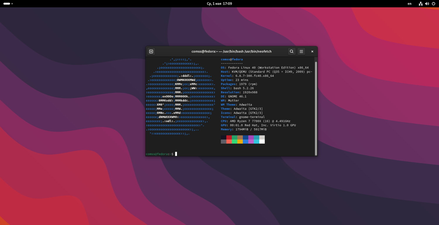 Neofetch собирает информацию о вашей системе, такую как версия ОС, характеристики аппаратного обеспечения и версии программного обеспечения, а затем отображает её в терминале в виде ASCII, что делает вывод красивым и визуально привлекательным. Эта функциональность быстро завоевала популярность среди пользователей.