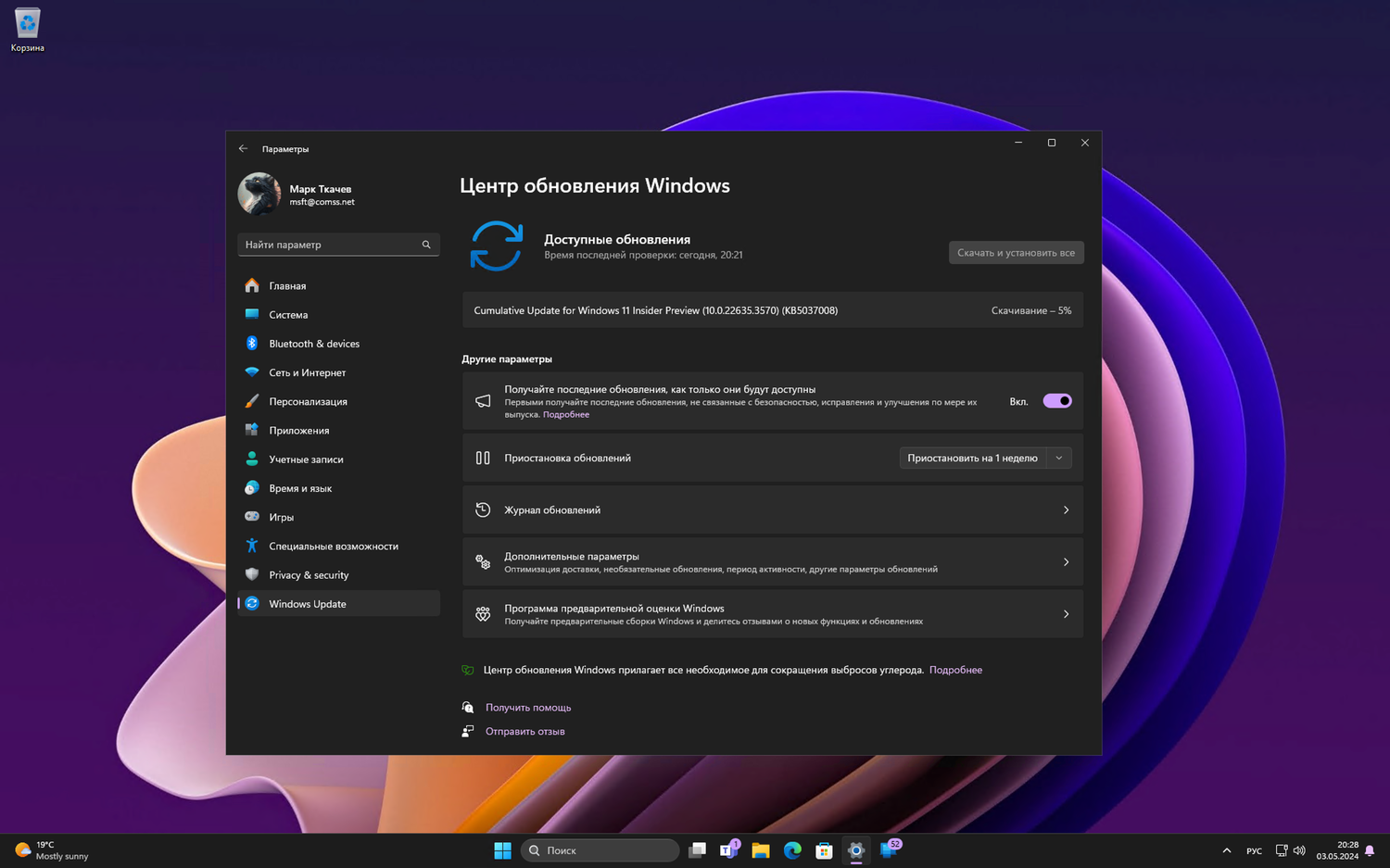 Примечание. Microsoft заблокировала установку обновлений для инсайдеров Windows 11 в России и Беларуси. Для установки Windows 11, Версия 23H2 (Сборка ОС 22635.3570) вы можете использовать наши DNS-серверы: Установка инсайдерских сборок Windows 11 с помощью Comss.one DNS.
