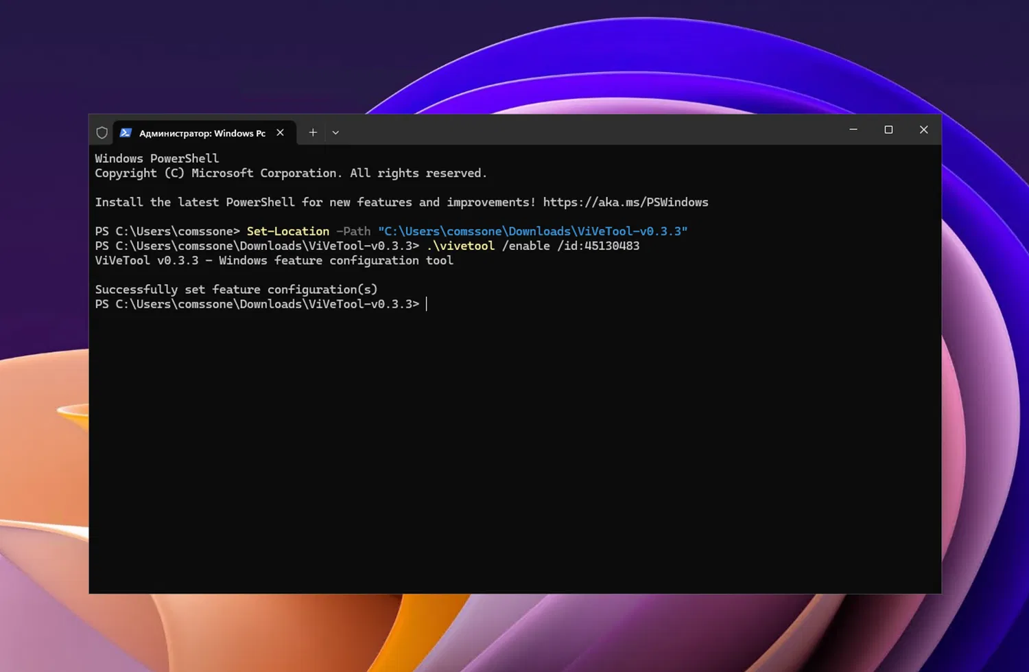 Примечание. Стоит отметить, что включение новых функций с помощью ViVeTool может привести к нестабильности устройства. Если это рабочий компьютер, возможно, стоит подождать, пока функция не будет выпущена для вашего устройства, вместо того чтобы включать её вручную.
