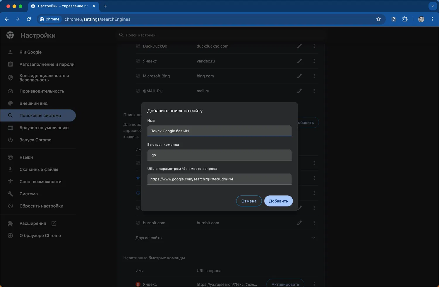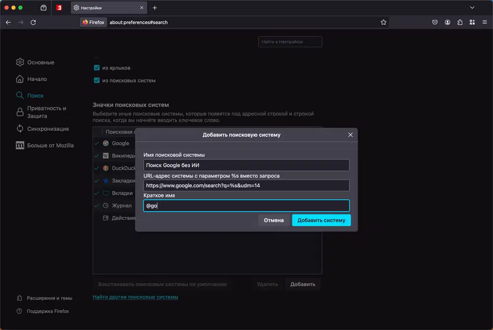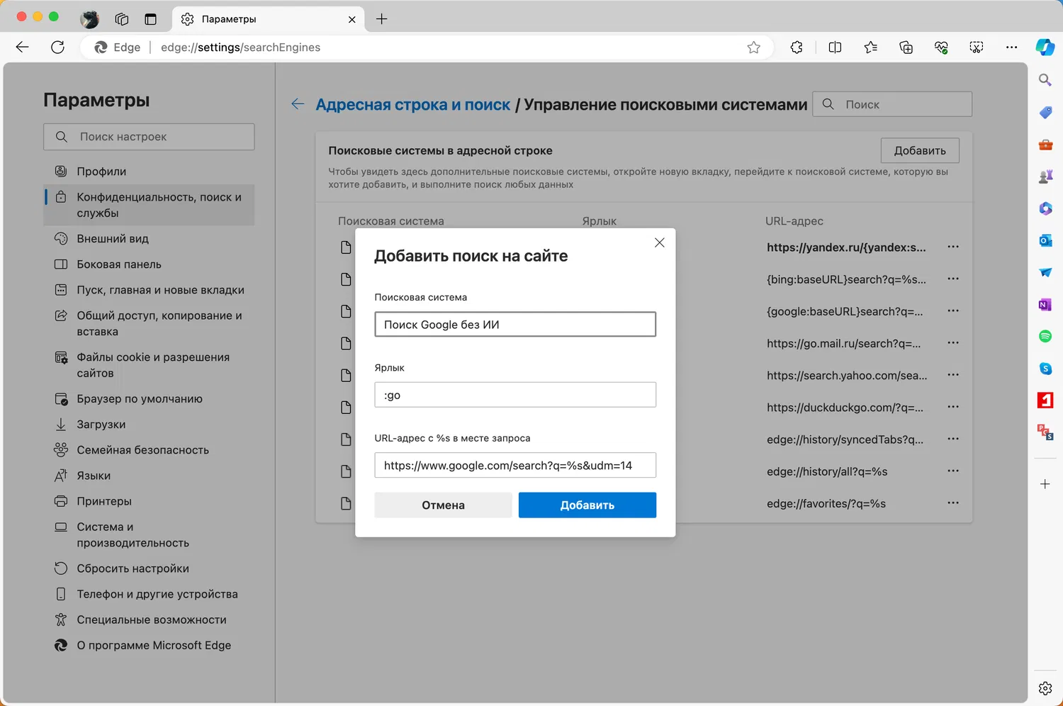 В данной статье расскажем, как добавить поисковую систему Google без ИИ в предпочитаемый браузер.