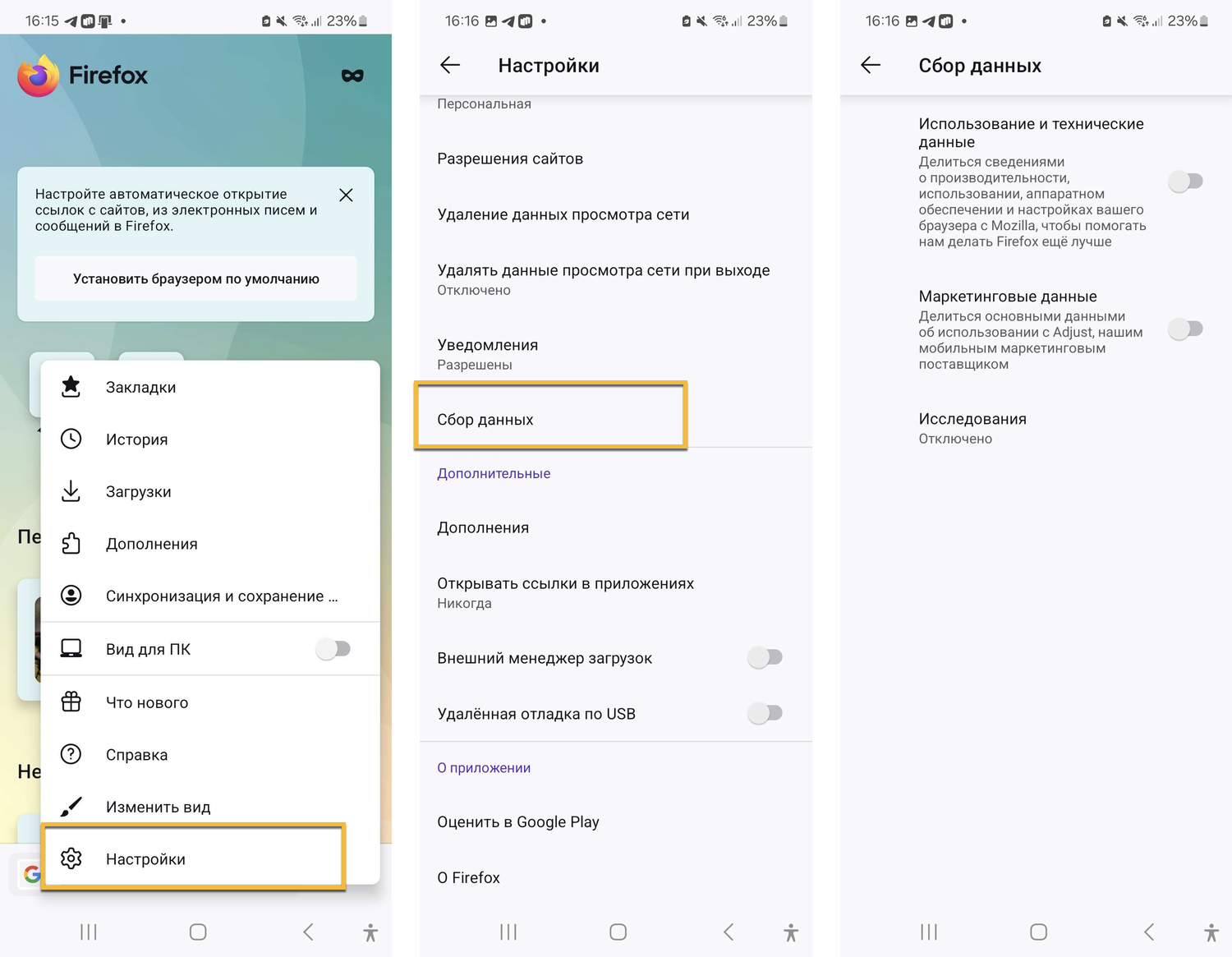 Как отключить Telemetry в Firefox для Android