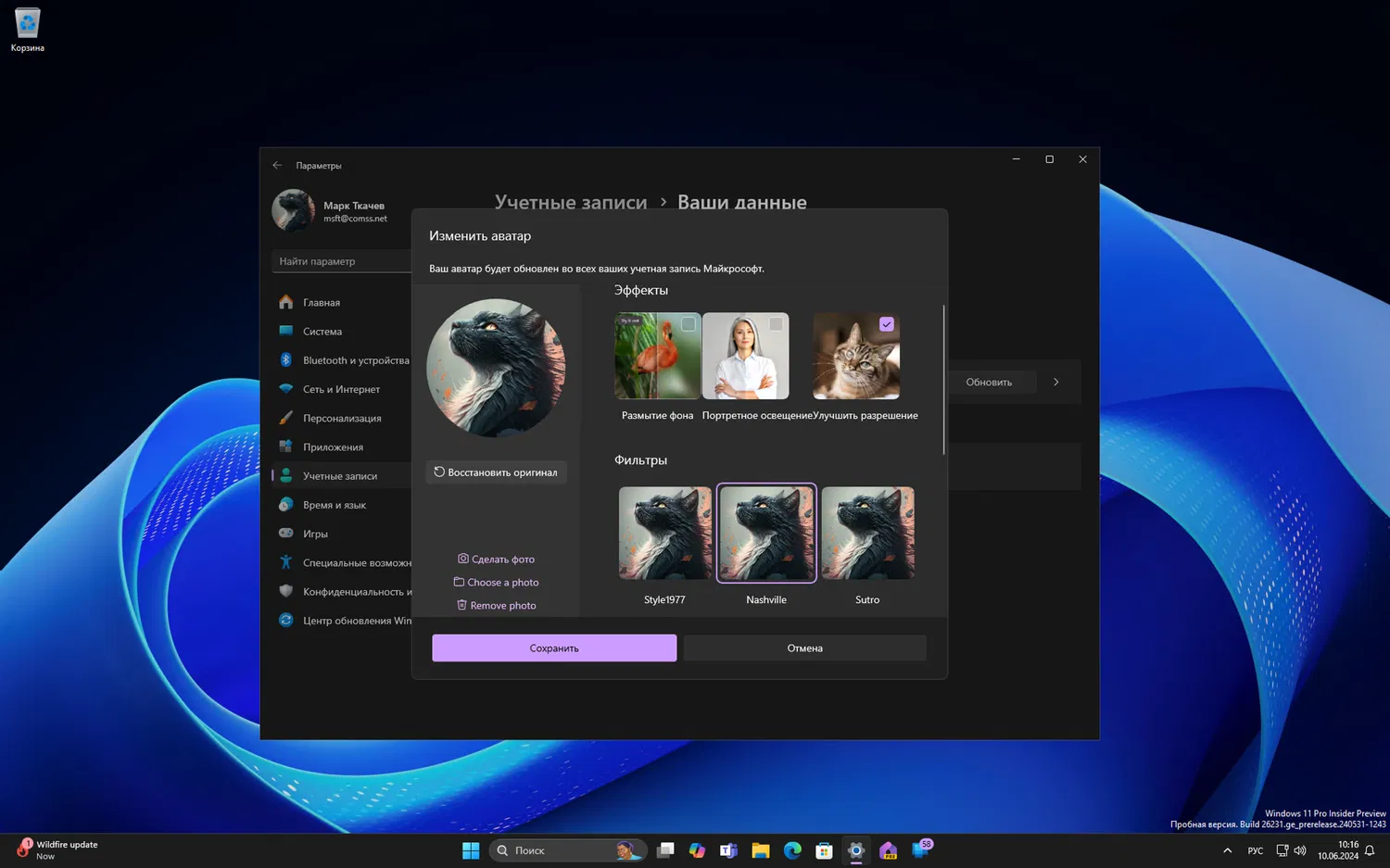 Новый редактор фото профиля улучшает процесс добавления и изменения изображения профиля на устройствах Windows 11. Основные улучшения касаются опций редактирования, так как больше не потребуется запускать сторонние приложения для применения эффектов или поворота изображения.