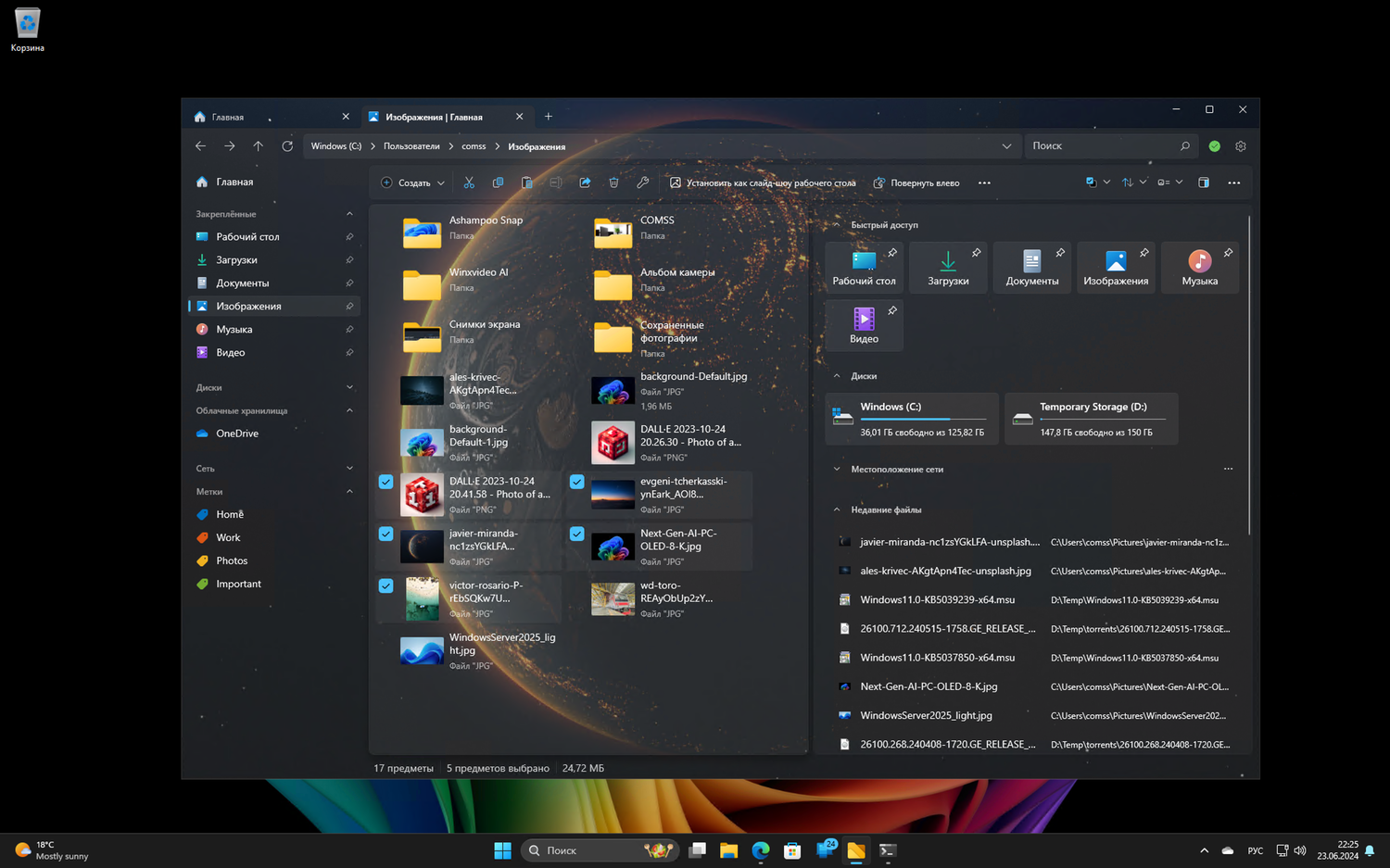 Новый виджет сетевых расположений на домашней странице облегчает доступ к сетевым ресурсам, делая управление файлами более централизованным. Поддержка взаимодействия с облачными хранилищами также расширена, включая индикаторы синхронизации для файлов в OneDrive.