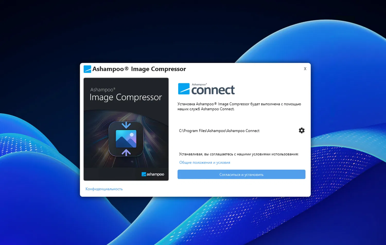 4. Далее в Ashampoo Connect для Ashampoo Image Compressor нажмите Установить, чтобы установить программу на ваш компьютер.