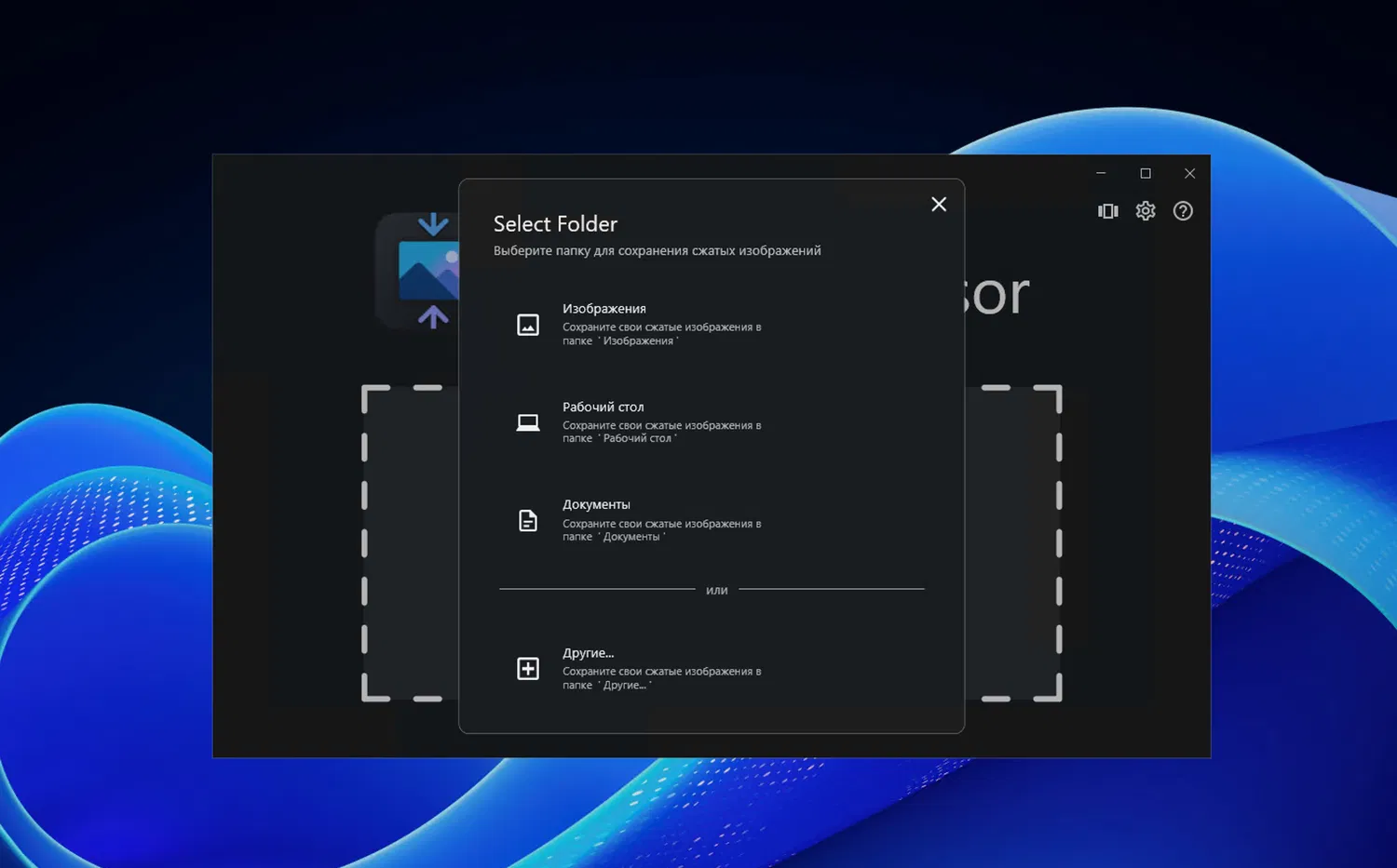 - Эффективное сжатие изображений форматов JPG, JPEG, PNG и WebP.