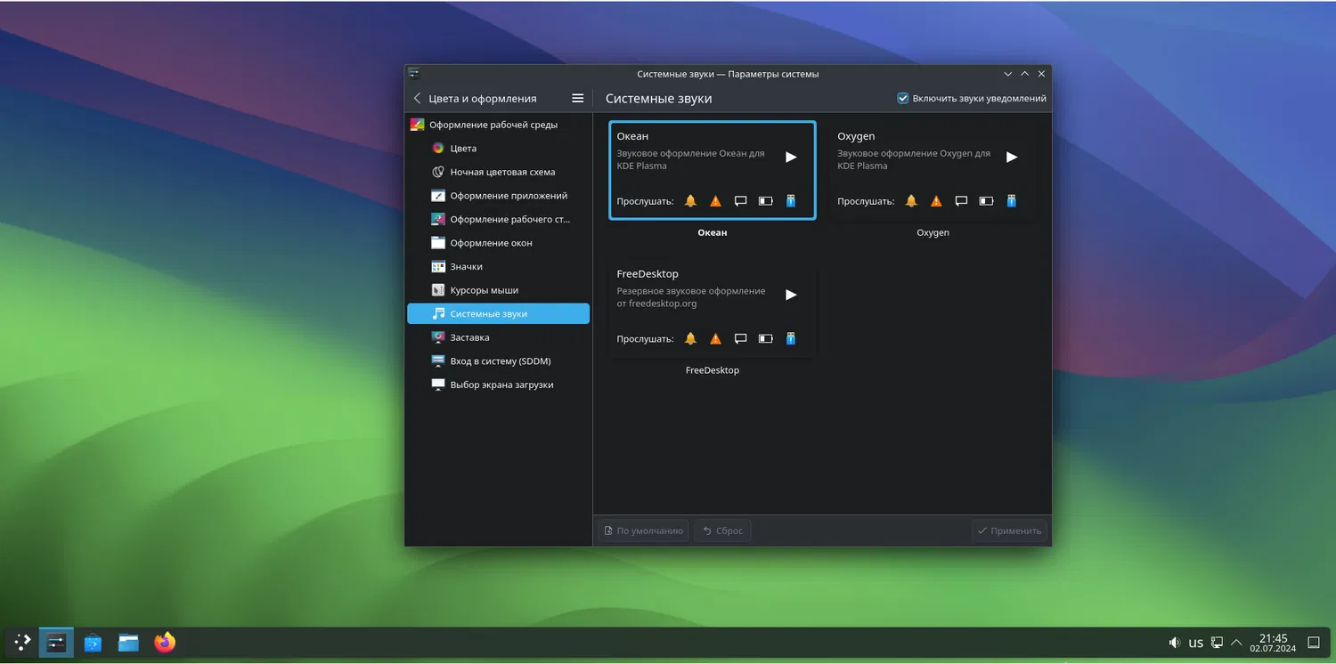 Различные части рабочего окружения Plasma, такие, как темы звуков ocean-sound-theme и oxygen-sounds, получили обновления, обеспечивающие более целостное звуковое восприятие.