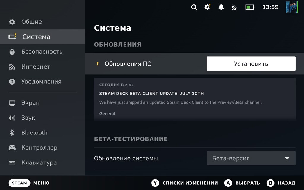 Обновления для Steam Deck