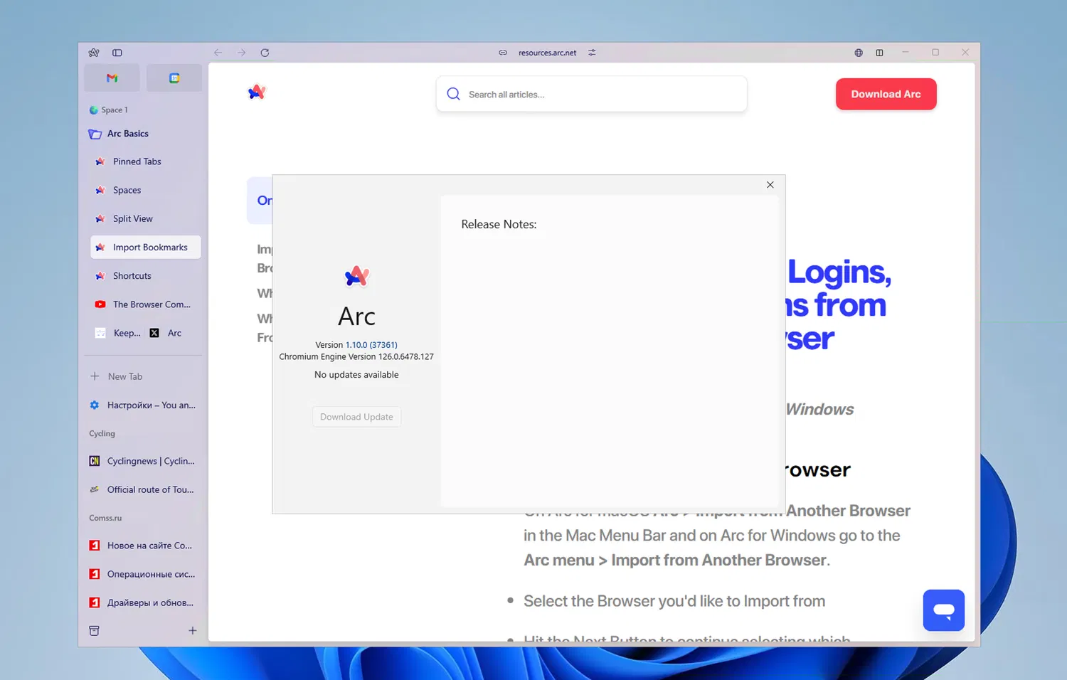 • Сохранение Настроек: Благодаря отзывам пользователей была исправлена ошибка, при которой настройки не сохранялись после перезапуска Arc.