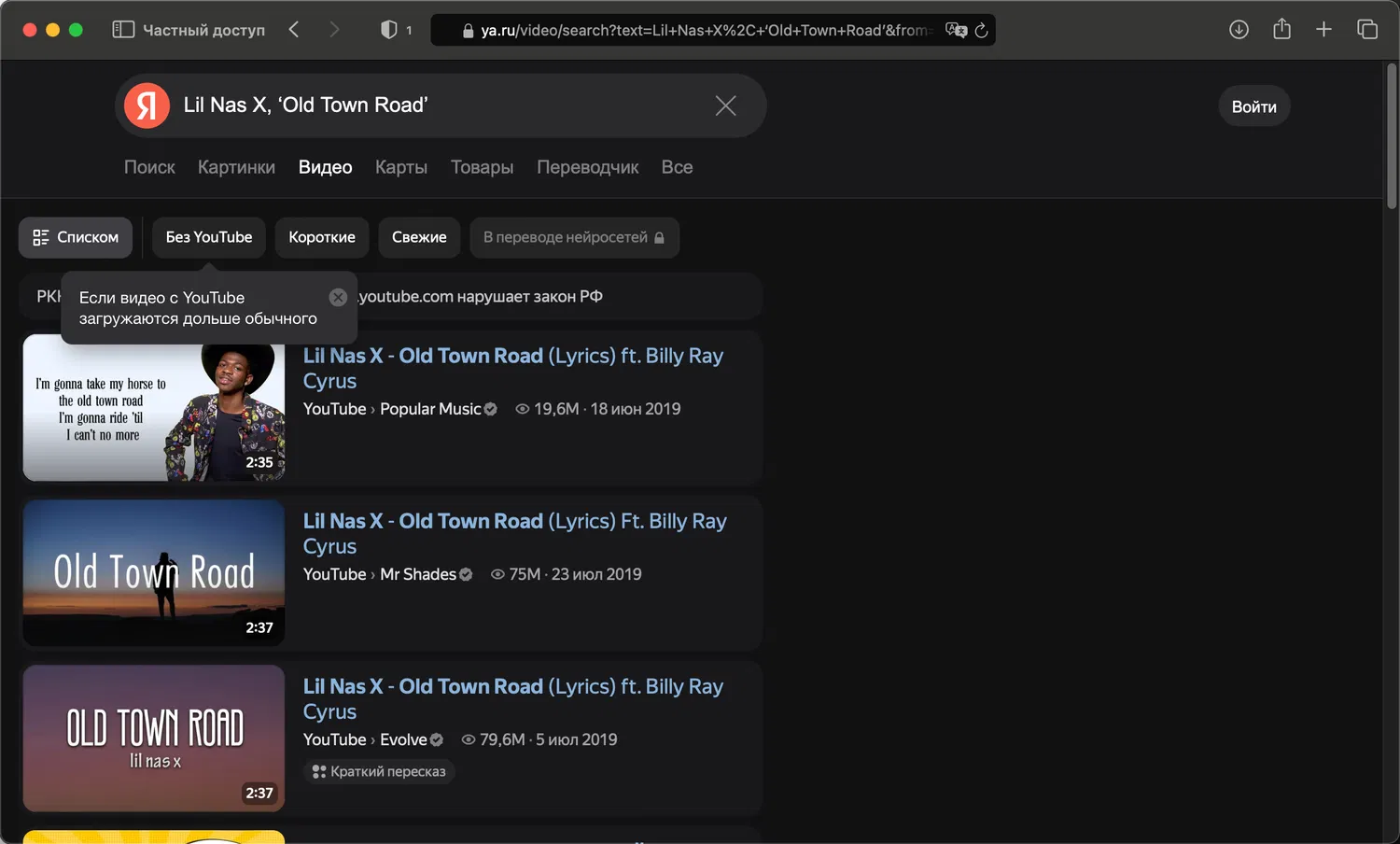 Новый фильтр, получивший название «Без YouTube» доступен в «Поиске» на всех устройствах. Как отмечет сам Яндекс, включение фильтра особенно полезно, "если видео с YouTube загружаются дольше обычного", что может происходить в условиях ухудшения работы сервиса.