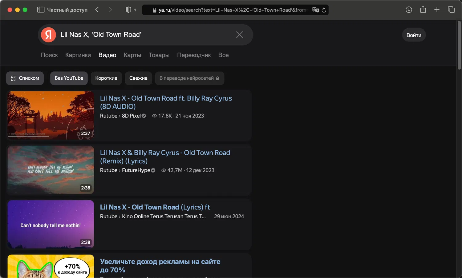 В августе 2024 года компания Яндекс представила новую функцию в своем поисковике, позволяющую пользователям исключать видеоролики с платформы YouTube из результатов поиска по видео.