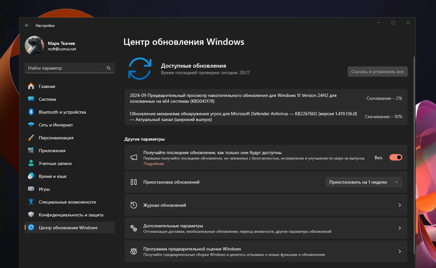 Примечание. Чтобы предварительные обновления устанавливались автоматически, включите опцию Получайте последние обновления, как только они будут доступны в меню Параметры > Центр обновления Windows.