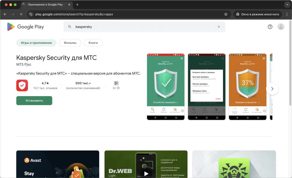 В России сохранилось только приложение Kaspersky Security для МТС – специальная версия решения от Kaspersky Lab, предназначенная для абонентов МТС.