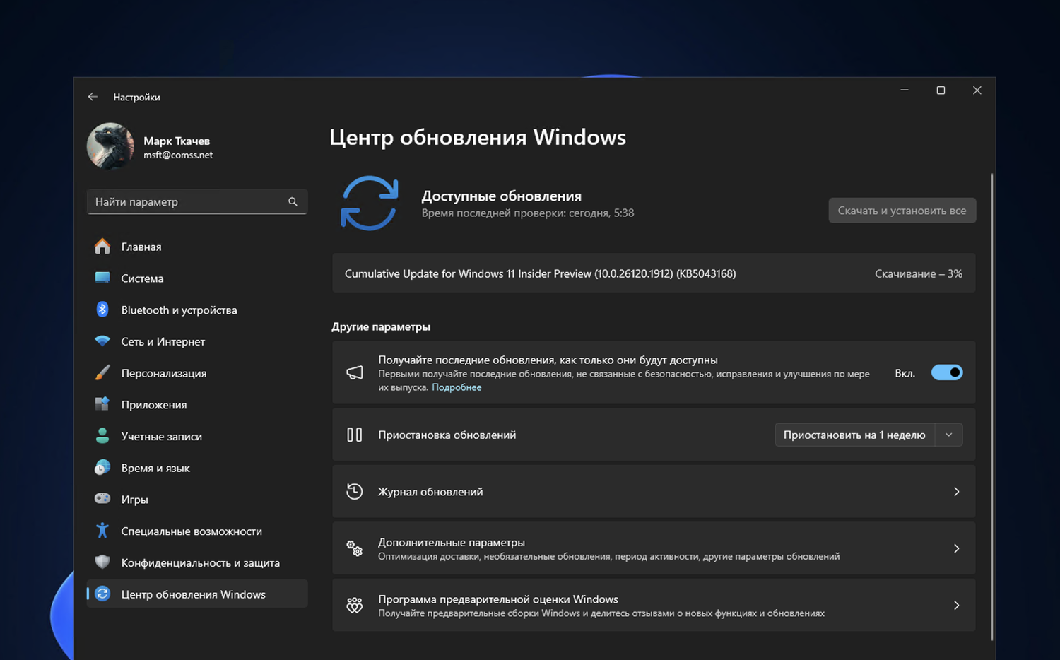 Примечание. Microsoft заблокировала установку обновлений для инсайдеров Windows 11 в России и Беларуси. Для установки обновления KB5043168 (Build 26120.1912) вы можете использовать наши DNS-серверы: Установка инсайдерских сборок Windows 11 с помощью Comss.one DNS.