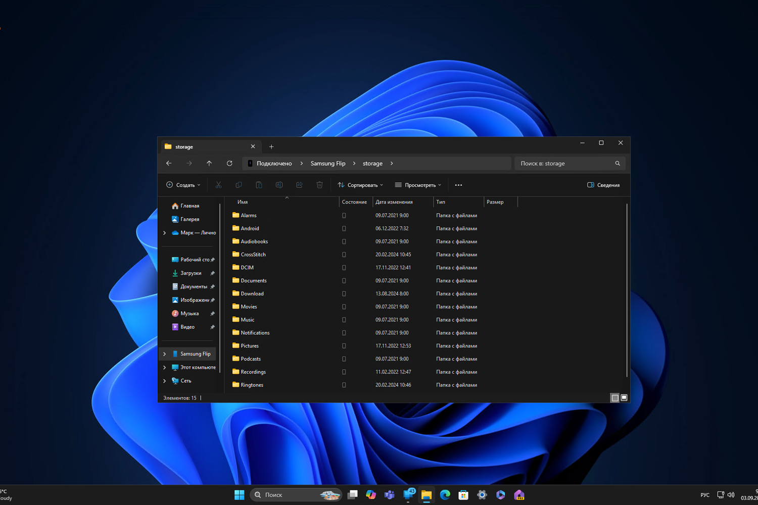 - Выберите подключенный диск на левой навигационной панели Проводника.