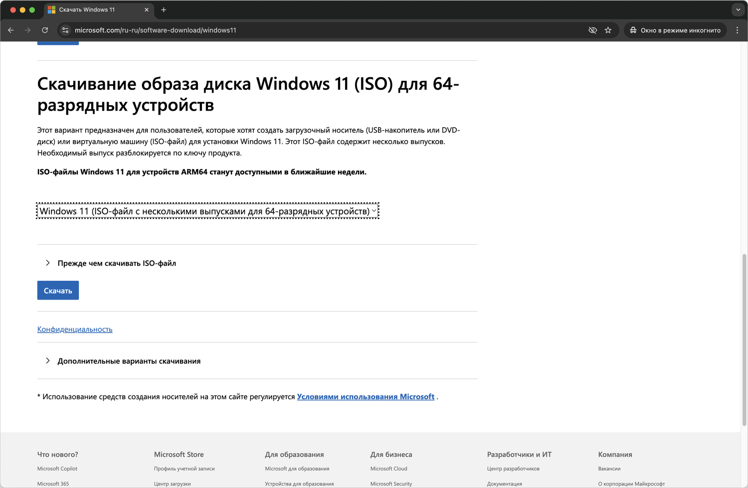 ВАЖНО: Microsoft заблокировала возможность загрузки официальных ISO-образов Windows 11 и Windows 10 из России.