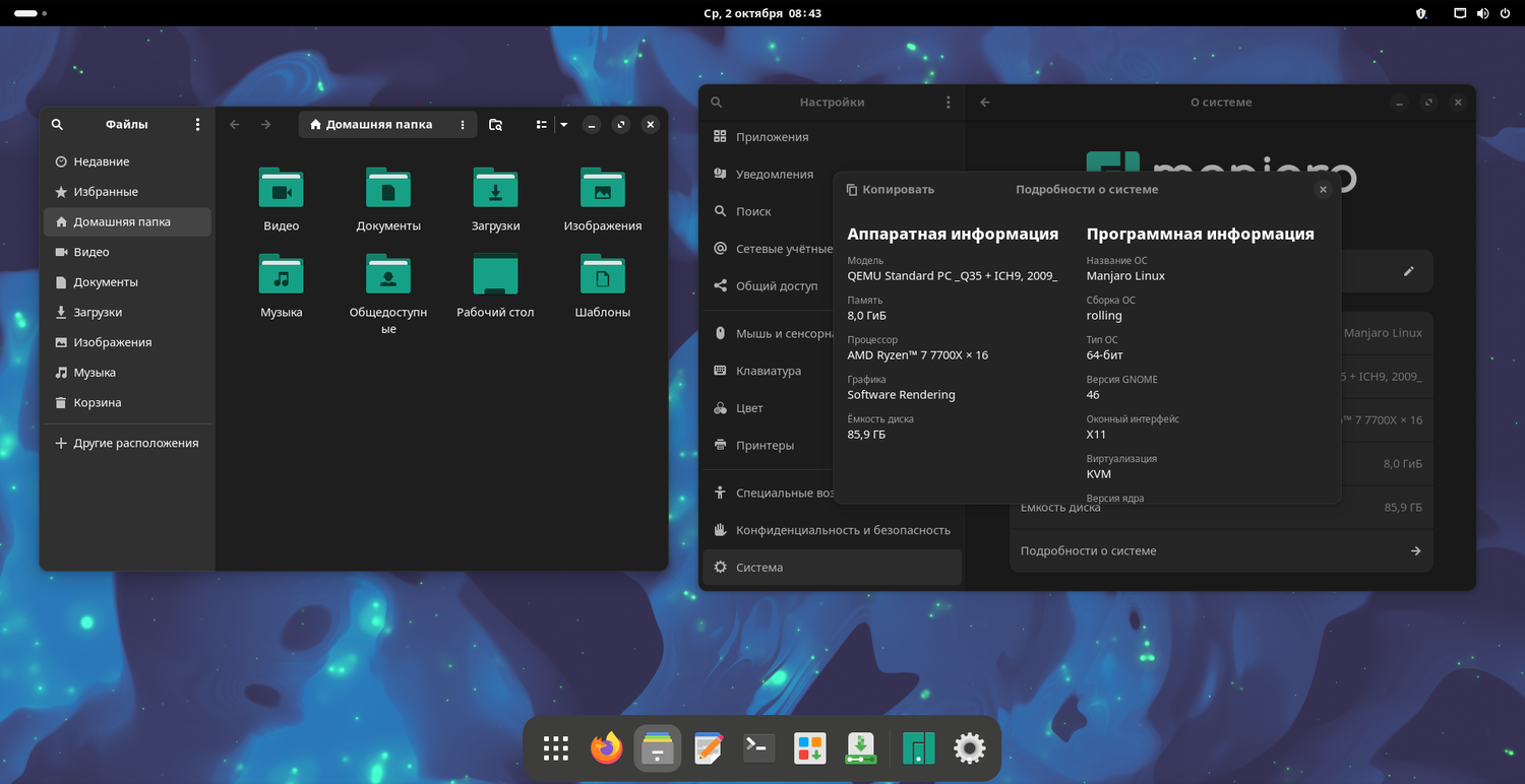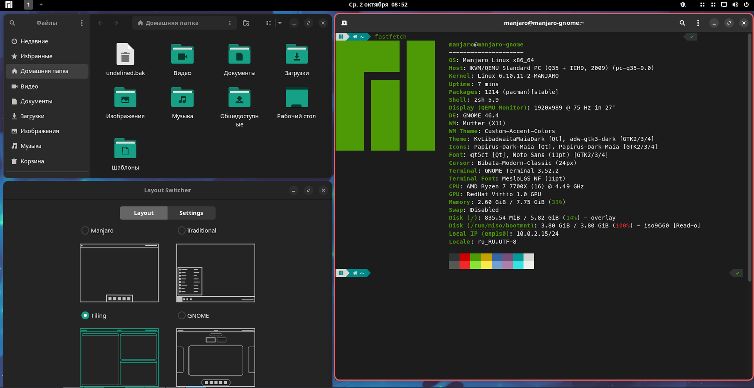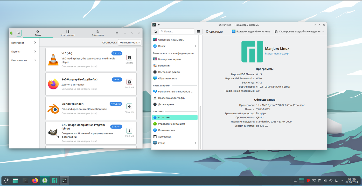 Ядро и системные компоненты Manjaro 24.1 базируется на ядре Linux 6.10, что обеспечивает улучшенную производительность и стабильность работы. Для пользователей устаревшего оборудования сохранена поддержка ядер 6.6 LTS и 6.1 LTS.