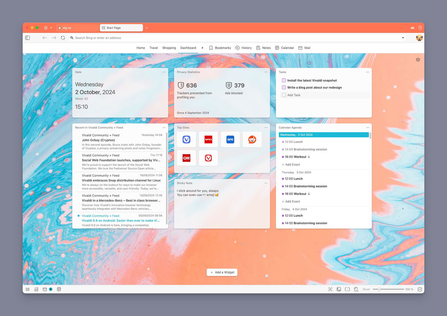 В этом обновлении разработчики также представили новую Панель управления, которая позволяет пользователям собирать всю необходимую информацию в одном месте. Панель управления предоставляет доступ к 11 виджетам, которые можно настроить в соответствии с вашими предпочтениями. Эта функция особенно полезна для тех, кто активно использует встроенные инструменты, такие как почтовый клиент, календарь и RSS-ридер.