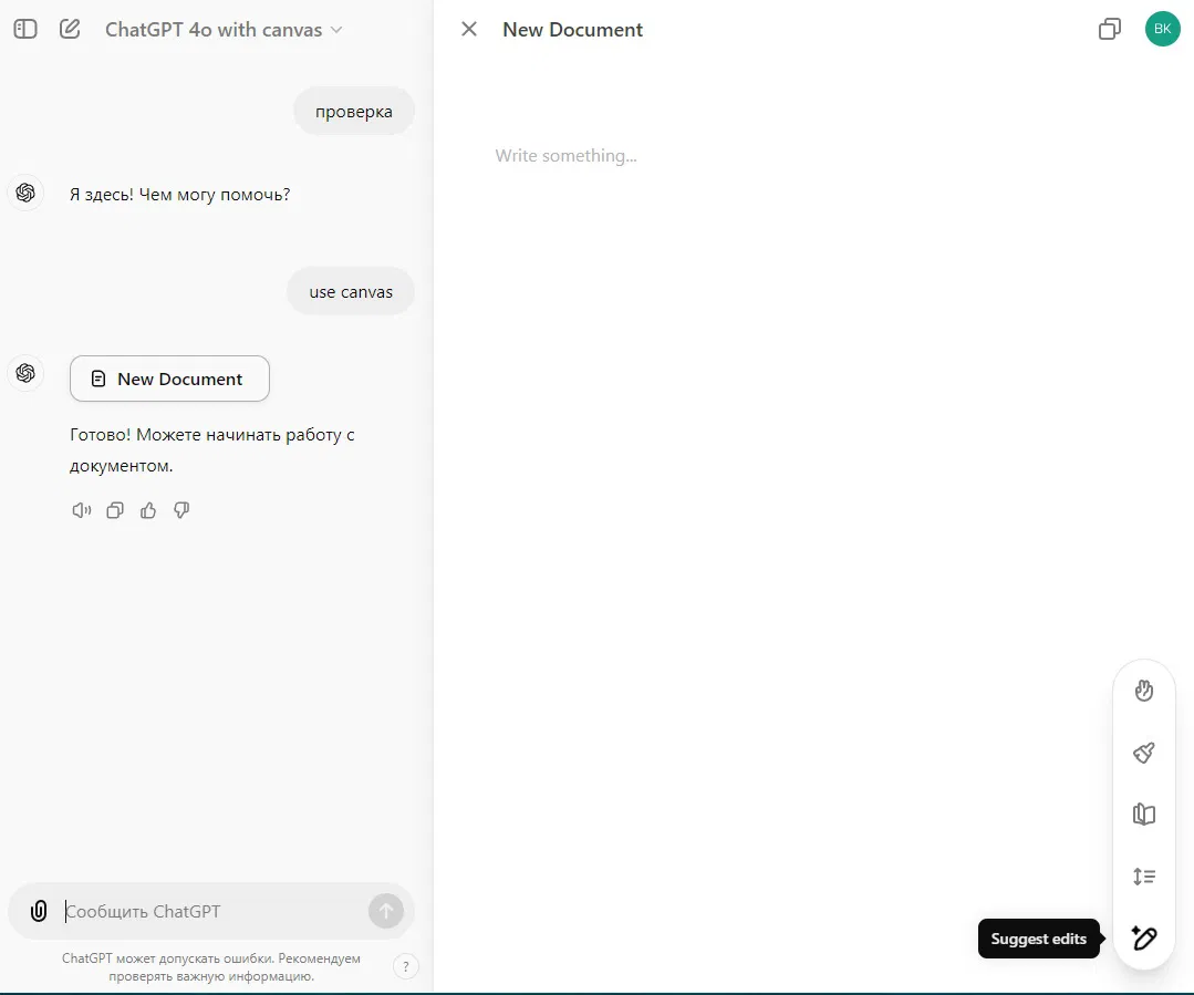 OpenAI также обучила ChatGPT распознавать, когда запрос в чате должен инициировать создание нового Canvas, а не просто отвечать в обычном окне чата.