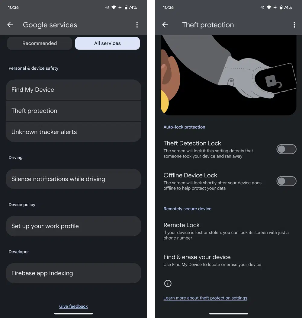 "Офлайн-блокировка устройства" срабатывает, "если кто-то украдет [ваш телефон] и отключит интернет, чтобы предотвратить отслеживание местоположения". Google отмечает два условия: