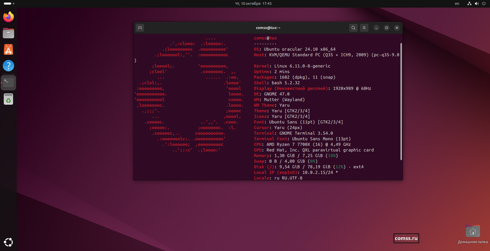 ISO-образ Ubuntu 24.10 доступен для загрузки. Поддержка этой версии будет осуществляться в течение девяти месяцев, до июля 2025 года. Для пользователей, нуждающихся в долгосрочной поддержке, рекомендуется использовать Ubuntu 24.04.1 LTS с поддержкой как минимум до 2029 года.