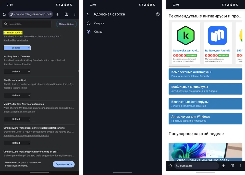 chrome://flags/#android-bottom-toolbar - Перезапустите браузер.