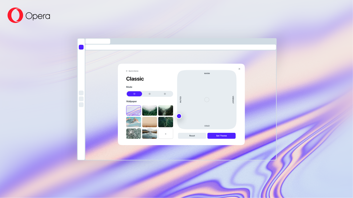 В Opera One R2 будут доступны три разные темы: Classic, Aurora и Midsommar. Classic позволяет вам сохранить привычный вид Opera, если он вам больше нравится, и позволяет настраивать цвета пользовательского интерфейса по своему вкусу. Однако темы Aurora и Midsommar — довольно существенное обновление для браузера.