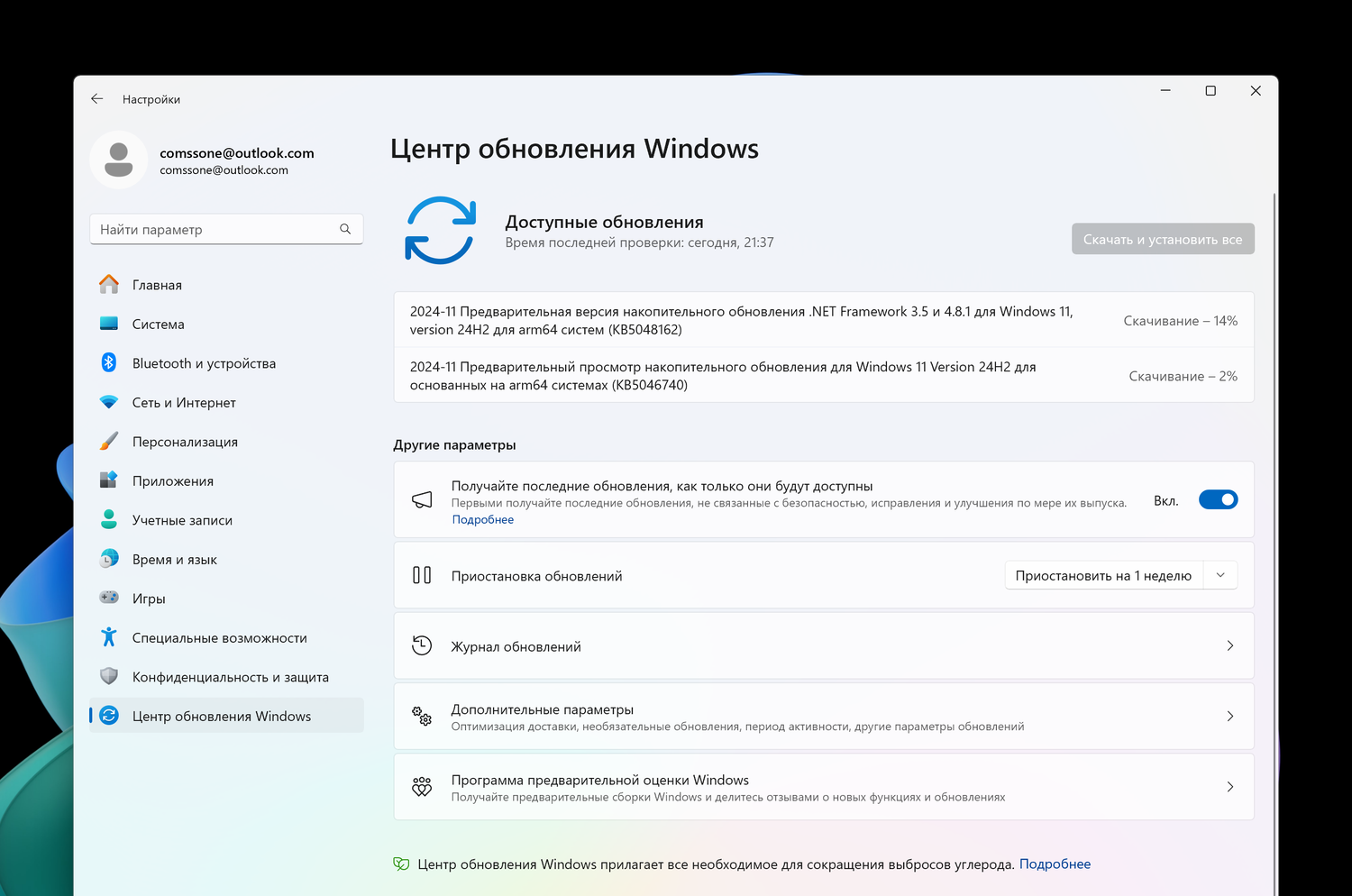 Примечание. Чтобы предварительные обновления устанавливались автоматически, включите опцию Получайте последние обновления, как только они будут доступны в меню Параметры > Центр обновления Windows.