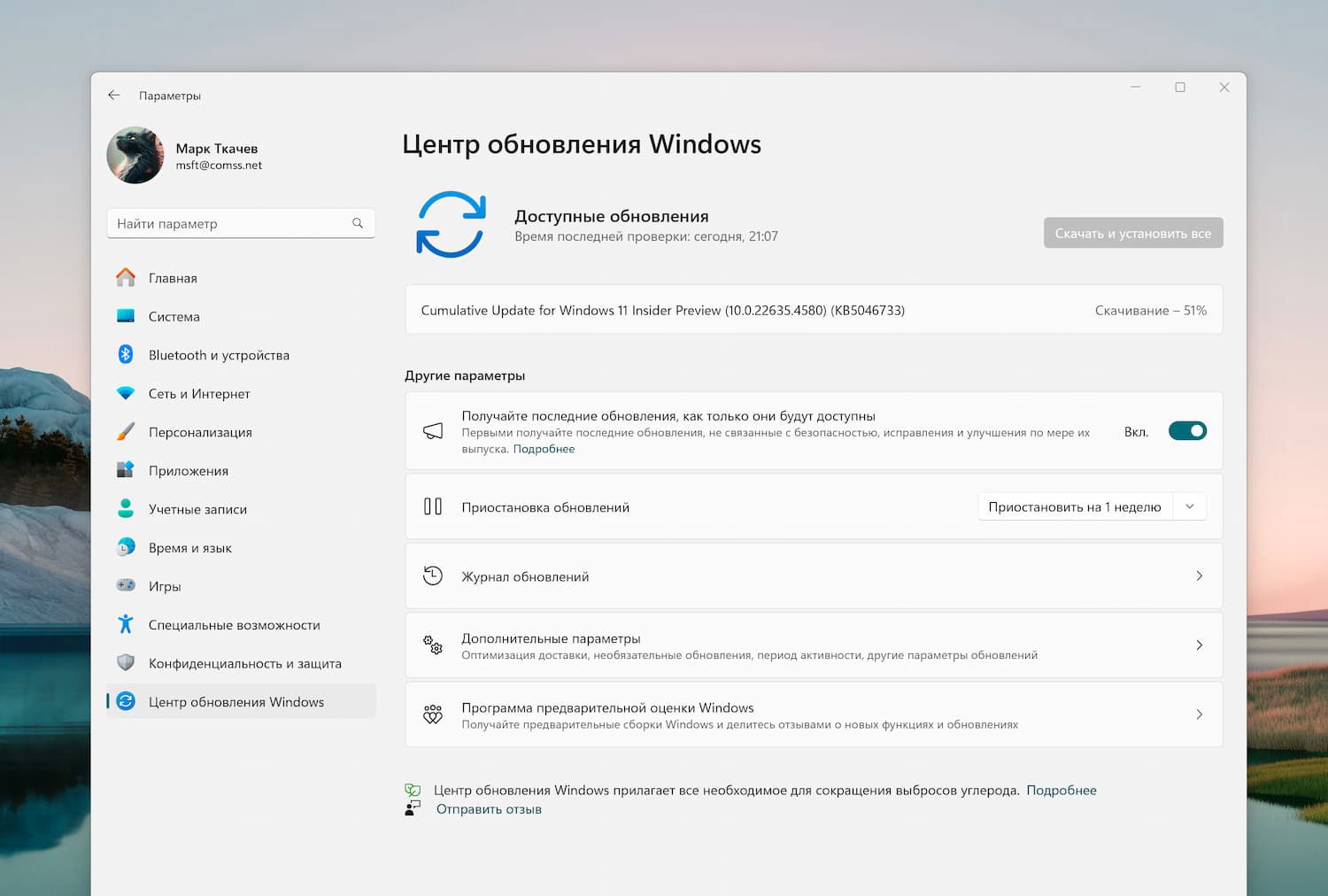 Участники программы, желающие первыми получить новые функции, могут включить переключатель «Получайте последние обновления, как только они будут доступны» в приложении «Параметры» > Центр обновления Windows», чтобы получать последние обновления по мере их доступности. Со временем функции будут распространяться на всех участников с включенным переключателем.