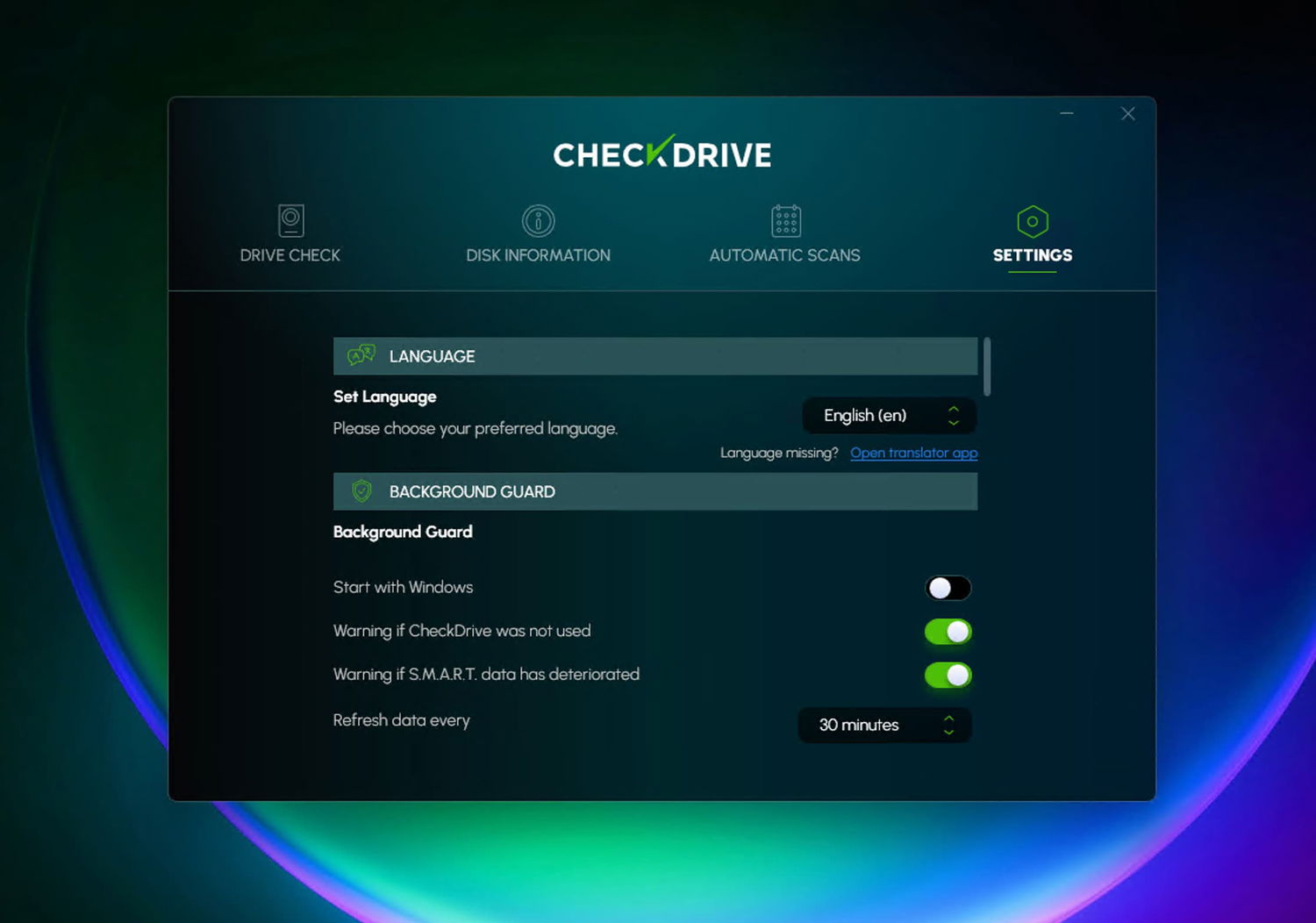 Версия Abelssoft CheckDrive Plus позволяет использовать полный набор функций, включая фоновый мониторинг и планировщик задач.