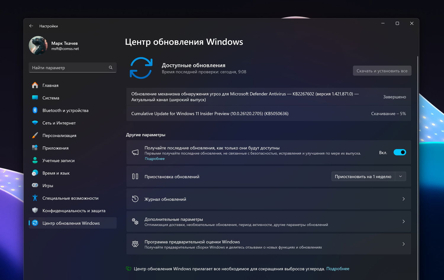 Примечание. Microsoft заблокировала установку обновлений для инсайдеров Windows 11 в России и Беларуси. Для установки обновления KB5050636 (Build 26120.2705) вы можете использовать наши DNS-серверы: Установка инсайдерских сборок Windows 11 с помощью Comss.one DNS.