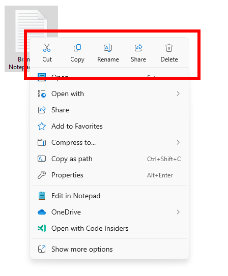 - Для удобства использования контекстного меню Проводника добавлены подписи к действиям, таким как вырезать, копировать, вставить, переименовать, поделиться и удалить.