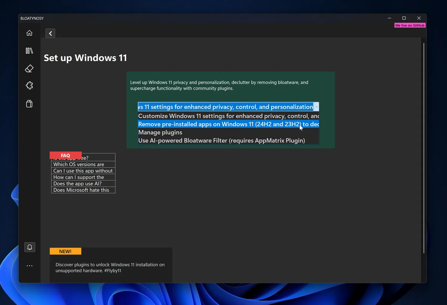 На главной странице приложения теперь размещена ссылка на Flyby11 – утилиты для обновления до Windows 11 на неподдерживаемом оборудовании от этого же разработчика.