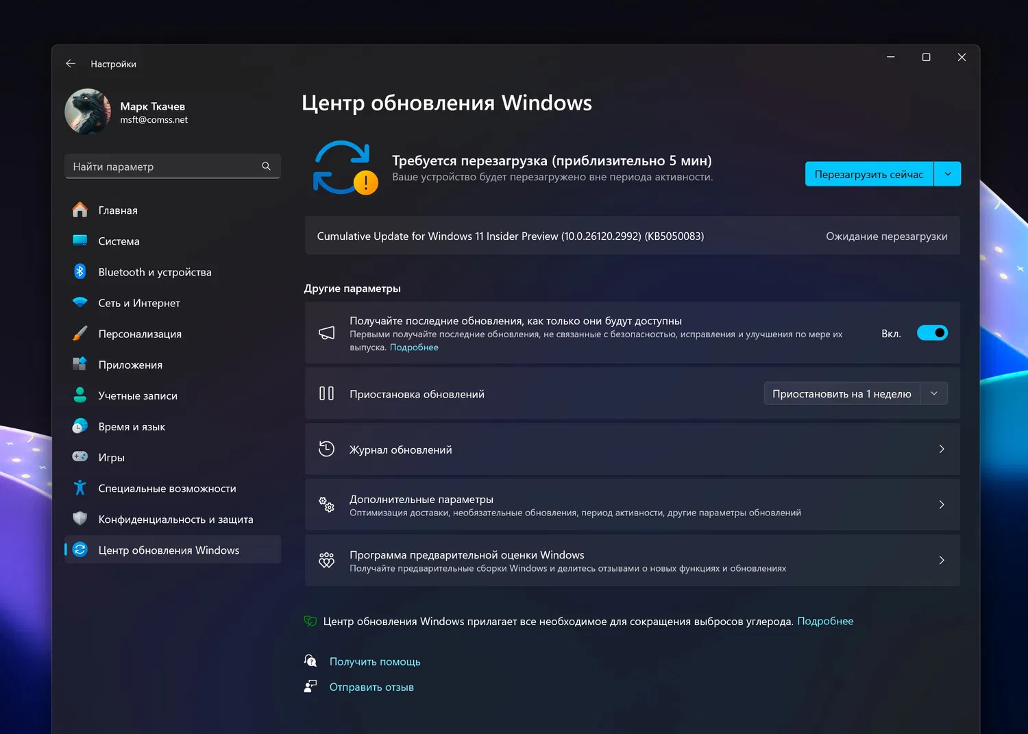 Для завершения установки потребуется перезагрузка компьютера. После обновления номер сборки Windows 11, версия 24H2 поменяется на 26120.2992.