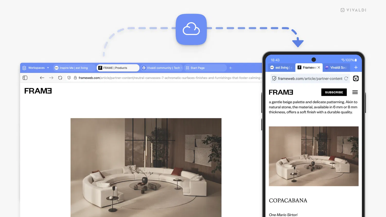 Для пользователей, работающих с несколькими устройствами, в Vivaldi добавили функцию «Отправить вкладку на устройство». Она позволяет мгновенно передавать вкладки с одного устройства на другое. Эта функция будет доступна на мобильных устройствах с 30 января, когда выйдут новые версии Vivaldi для Android и Vivaldi для iOS .