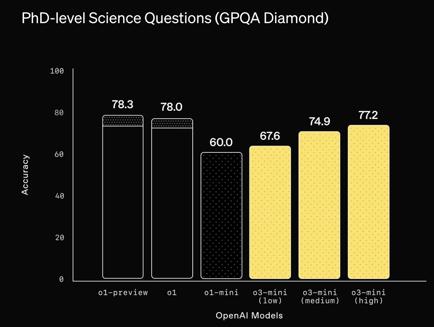 Практически во всех тестах — от математики и программирования до ответов на сложные научные вопросы — o3-mini (в high-режиме) демонстрирует результаты, сопоставимые с o1, а в некоторых задачах даже превосходит её.