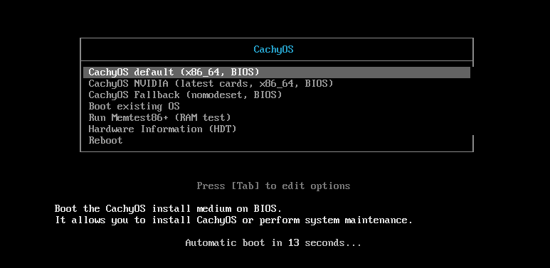 Пользователям старых моделей GPU, особенно тех, которые не оснащены чипами GSP, рекомендуется избегать опции загрузки «NVIDIA» на ISO. Вместо этого следует выбрать первую или резервную опцию. После установки системы аппаратное обнаружение CachyOS автоматически подберет необходимые пакеты для установленной видеокарты.