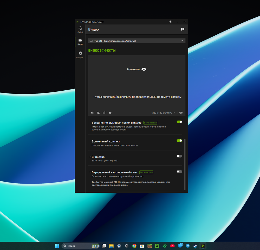 Виртуальный направленный свет автоматически регулирует освещение лица, устраняя резкие тени и создавая равномерное, мягкое освещение. Эффект имитирует работу физического ключевого источника света, улучшая визуальное восприятие изображения. Такая функция особенно актуальна для «just chatting», видеоконференций и подкастов, где важно качественное видеопредставление.