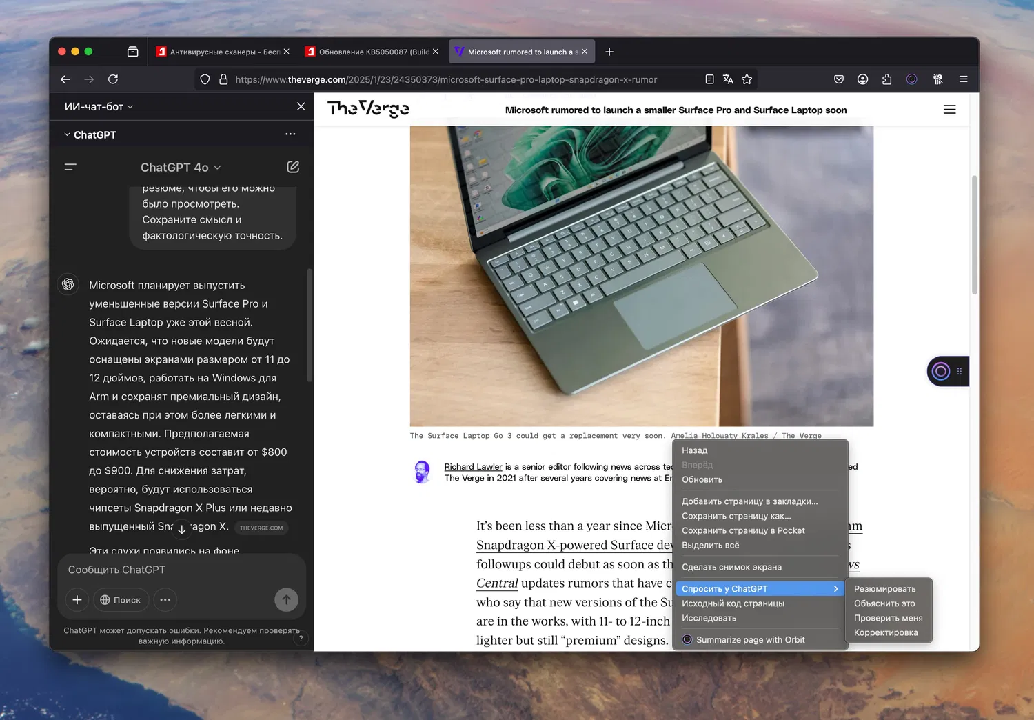 Новая версия также по умолчанию включает функцию ИИ-чат-бот в Firefox Labs.