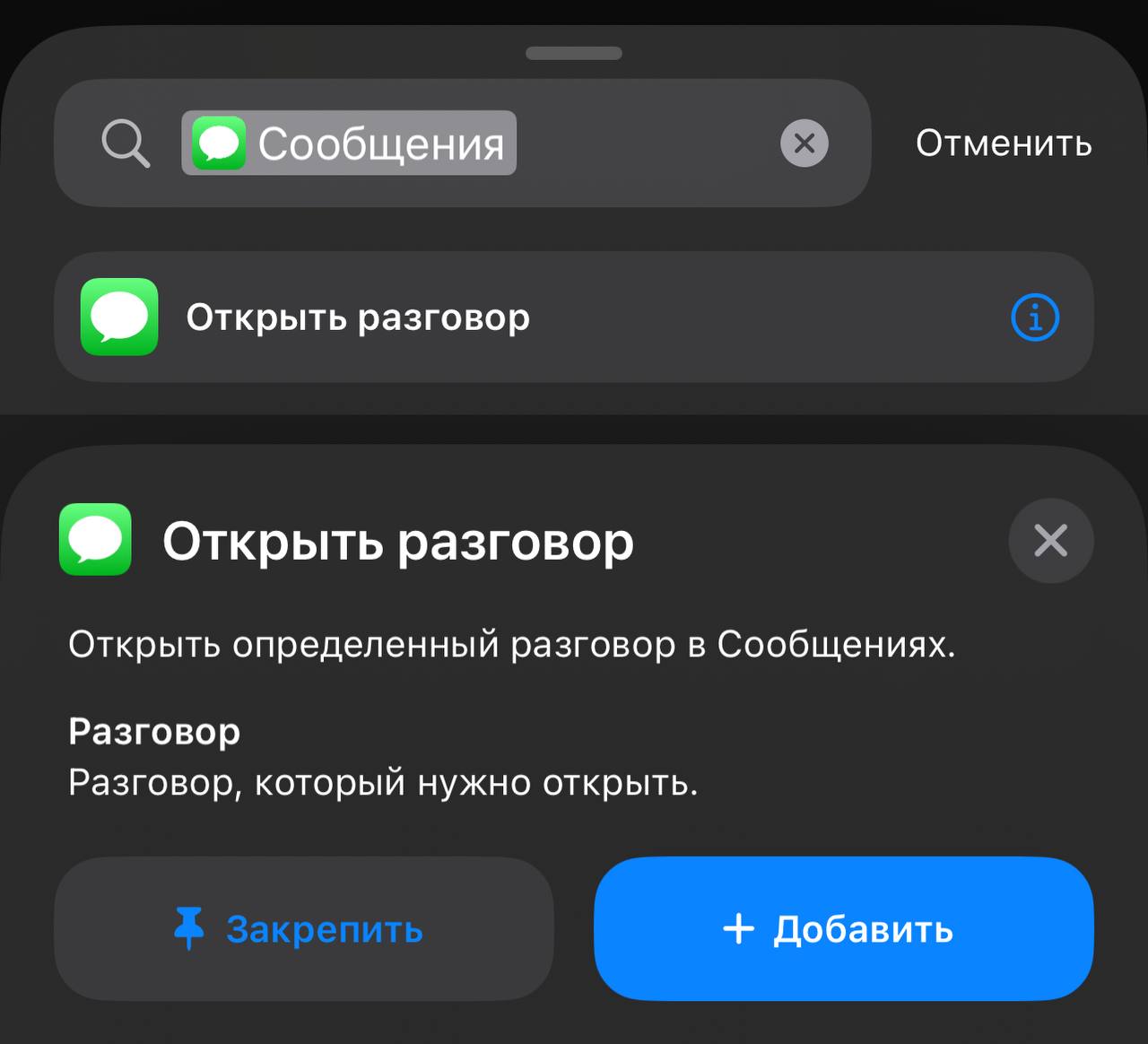 - Команды – новая быстрая команда для открытия определённого разговора в «Сообщениях».