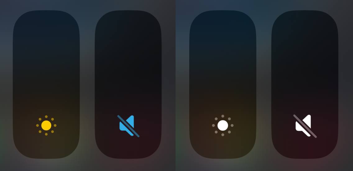 - Пункт управления – значки на слайдерах громкости и яркости становятся белыми при минимальных уровнях.