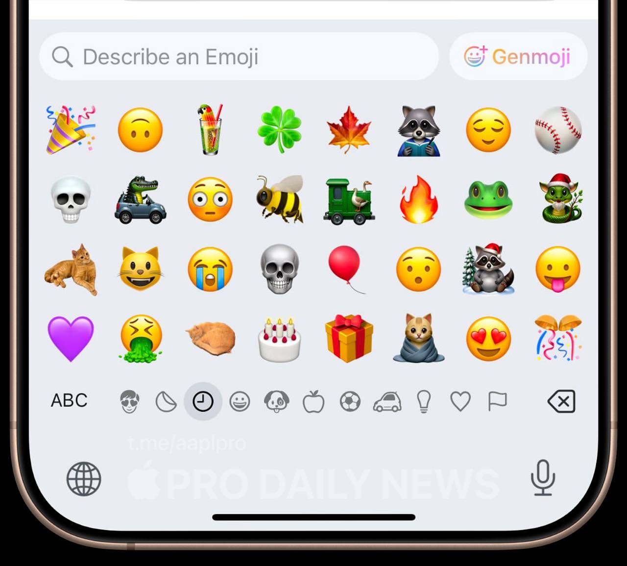 - Genmoji – на iPhone с поддержкой Apple Intelligence в клавиатуре теперь отображается цветная надпись «Genmoji».