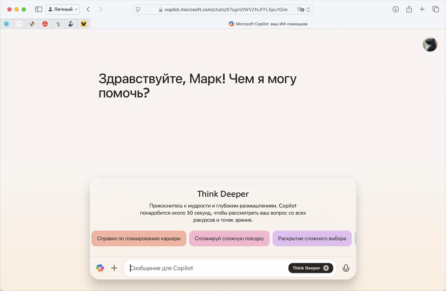 Microsoft ограничивает доступ к Copilot в России. Чтобы запустить веб-версию или приложение, вы можете использовать Comss.one DNS на вашем устройстве. Think Deeper на базе OpenAI o1 и голосовой режим «Обратиться к Copilot» доступны на сайте copilot.microsoft.com, в Windows и приложениях Microsoft Copilot для Android и Microsoft Copilot для iPhone.