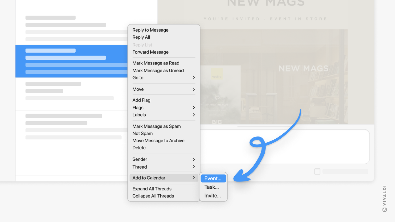 Электронная почта и расписание часто идут рука об руку – теперь они работают вместе. Создавайте события в календаре прямо из письма или веб-страницы. Пришло приглашение на встречу или подтверждение билета? Не нужно копировать данные вручную – просто кликните правой кнопкой мыши и создайте событие в один клик.