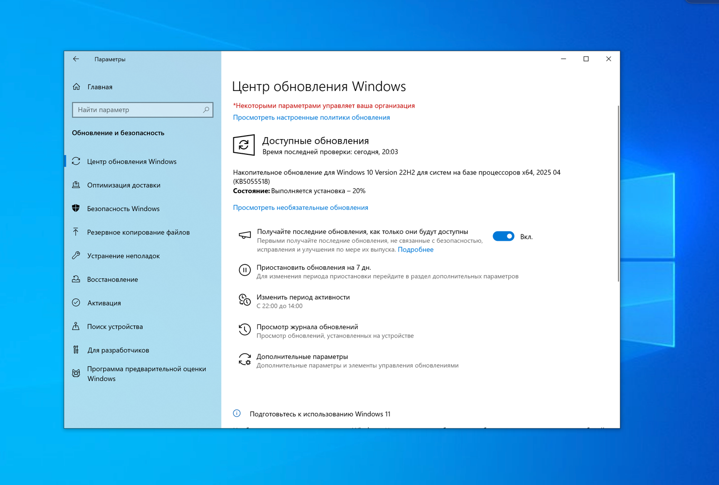 Накопительное обновление для Windows 10 Version 22H2 для систем на базе процессоров x64, 2025 04 (KB5055518)