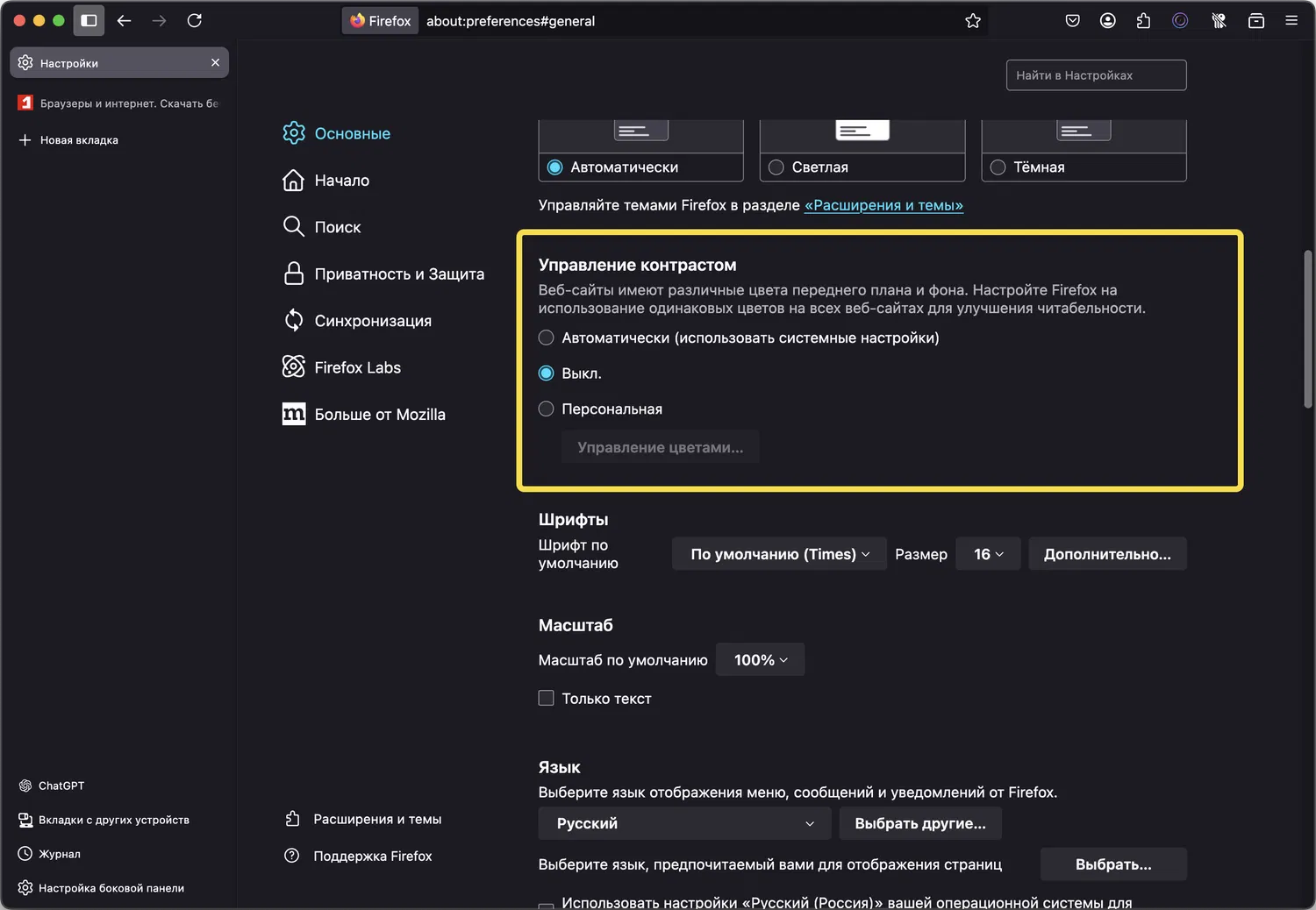 Веб-сайты имеют различные цвета переднего плана и фона. Настройте Firefox на использование одинаковых цветов на всех веб-сайтах для улучшения читабельности.