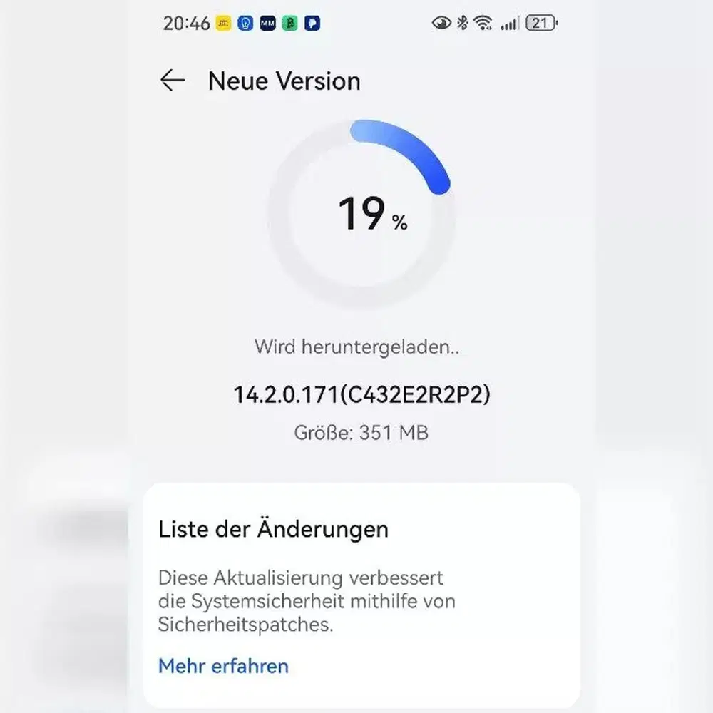 Обновление безопасности за май 2025 года для Huawei P60 Pro поставляется с версией EMUI 14.2.0.171 и имеет размер 351 МБ. Для стабильной загрузки и установки рекомендуется использовать надежное интернет-соединение, предпочтительно Wi-Fi, вместо мобильного интернета.