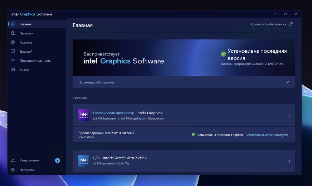 Обновление Intel Arc & Iris Xe Graphics Driver версии 32.0.101.6877 Non-WHQL доступно для скачивания через Intel Graphics Software (если отключена опция "Обновления драйверов, сертифицированных WHQL" на главной), Intel Driver & Support Assistant или с официального сайта Intel.com