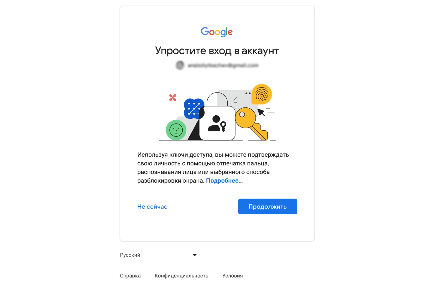 Google рекомендует passkey и вход через соцсети