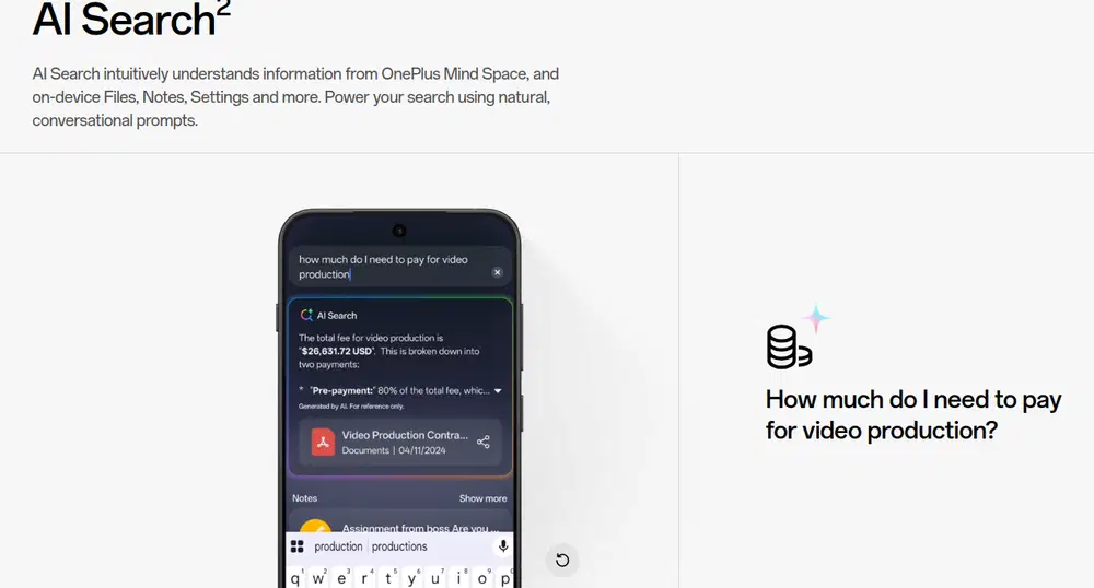 Приложение Mind Space использует технологию OnePlus AI для автоматической обработки контента. Оно создает описания, теги и дополнительную информацию для каждого сохраненного элемента, а также может переводить текст на язык пользователя. Это позволяет легко находить сохраненные данные с помощью естественных языковых запросов в панели AI Search.